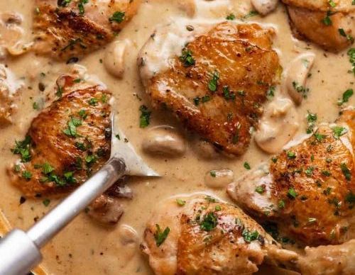 Tender chicken casserole in fresh tomato cream sauce with a hint of lemon and rosemary